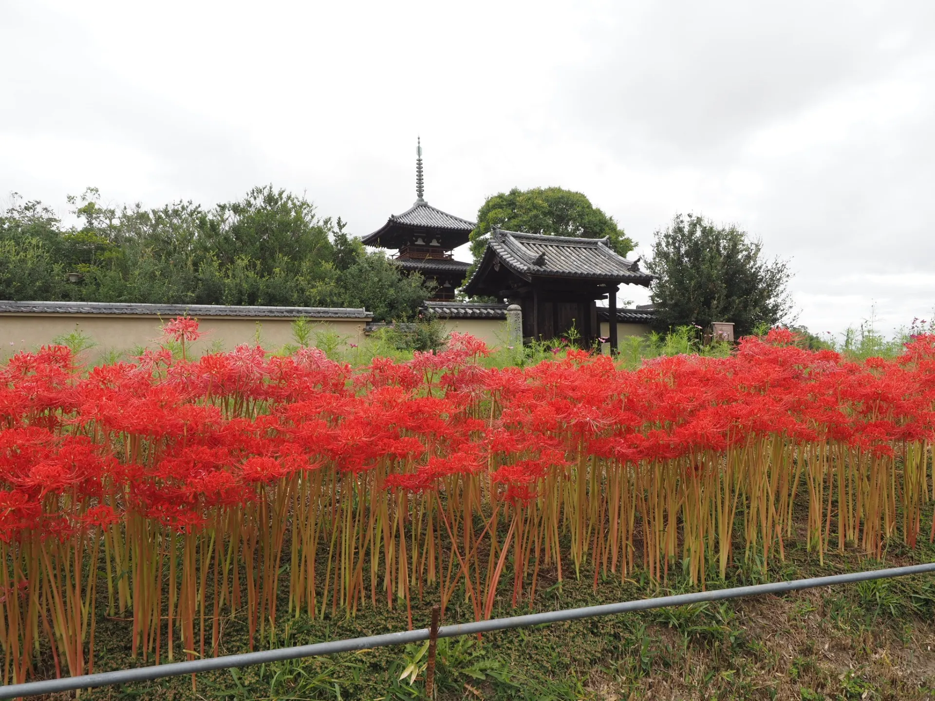 いざいざ奈良 2025/10/14 藤原宮跡のコスモス畑 今から約1300年前、持統・文武・元明の三代の天皇が治めた都、藤原京(694~710)の中心にあった宮殿・藤原宮のあったところ。秋はコスモスがきれいに咲きほこる名所 法起寺の彼岸花 推古天皇14年(606)に聖徳太子が法華経を講説されたという岡本宮を寺に改めたものと伝えられ、法隆寺、四天王寺、中宮寺などと共に、太子御建立七ヵ寺の一つ。この時期は彼岸花満開! お知らせ